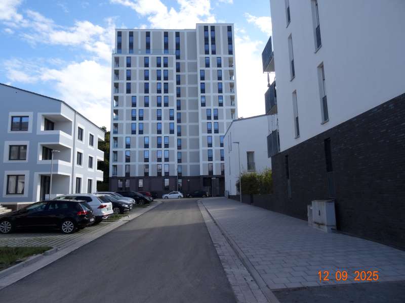 Zufällig trafen wir auch eine Bewohnerin des Gebäudes, die uns spontan zu einer Wohnungsbesichtigung einlud. Auf ihrer Terrasse hatten wir dann einen schönen Blick über Wolfsburg und das Baugebiet (vgl. Bild 20 und 21)